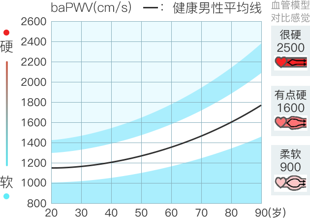 浅蓝色区域为同年龄段动脉硬度偏高